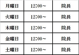※診療状況によりお時間前後いたしますので、ご了承下さい。